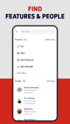 ملازمین کے لیے، یہ ایپ آپ کی تنخواہ اور W2 اسٹیٹمنٹس کو آسانی سے دیکھنے، چھٹی کی درخواست کرنے اور اس کا ٹریک رکھنے کا موقع فراہم کرتی ہے۔ آپ اپنے اوقات کار کو باآسانی ٹریک کر سکتے ہیں – چاہے وہ پنچ ان/آؤٹ کرنا ہو، ٹائم شیٹ بنانا ہو، یا اپنی ٹائم کارڈز میں ترمیم اور منظوری دینا ہو۔ مزید برآں، آپ اپنے پے کارڈ اکاؤنٹس اور بینیفٹ پلان کی معلومات تک رسائی حاصل کر سکتے ہیں، اور ساتھیوں سے رابطہ بھی کر سکتے ہیں۔ ADP اور فریق ثالث کی مصنوعات و خدمات سے متعلق پیشکشیں بھی دستیاب ہیں۔ مینیجرز کے لیے، آپ اپنے ماتحتوں کے ٹائم کارڈز اور چھٹیوں کی درخواستوں کو فوری طور پر منظور کر سکتے ہیں، ٹیم کے کیلنڈرز دیکھ سکتے ہیں اور انتظامی ڈیش بورڈز کے ذریعے اہم بصیرت حاصل کر سکتے ہیں۔