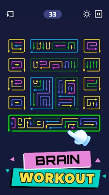 رنگ برنگے تیر ایک دوسرے کے گرد گھومتے اور مڑتے ہوئے دکھائی دیتے ہیں، اور آپ کا کام ہے کہ ان کی درست سمت کا تعین کریں اور انہیں پزل گرڈ سے بحفاظت باہر نکالیں، تاکہ دوسرے تیروں کی نقل و حرکت کے لیے بھی جگہ بنے۔ کھیل چند تیروں سے شروع ہوتا ہے اور تیزی سے مزید پیچیدہ بن جاتا ہے، جس سے ہر لمحہ دلچسپی برقرار رہتی ہے۔ Arrows Escape کا جمالیاتی ڈیزائن سادگی کی بہترین مثال ہے – گہرا پس منظر اور روشن تیروں کا امتزاج آپ کی توجہ صرف پزل پر مرکوز رکھتا ہے، بے جا اینیمیشنز اور گرافکس کی بھرمار سے پاک ایک پرسکون ماحول فراہم کرتا ہے۔