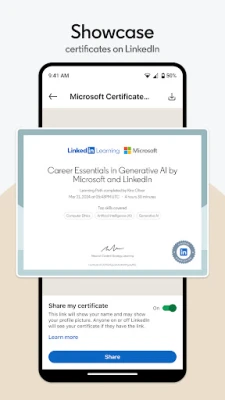 LinkedIn Learning آپ کو لچکدار سیکھنے کا تجربہ فراہم کرتا ہے۔ چاہے آپ آن لائن ہوں یا آف لائن، مختصر ویڈیوز، آڈیو لیکچرز، یا مکمل کورسز کے ذریعے اپنی پسند کے طریقے سے سیکھ سکتے ہیں۔ 'Daily' فیچر کے ساتھ، ہر روز تھوڑا سا وقت نکال کر نئی چیزیں سیکھنے کی عادت ڈالیں اور اپنے علم میں اضافہ کریں۔ کامیابی کے ساتھ کورسز مکمل کرنے پر پیشہ ورانہ سرٹیفکیٹ اور تسلسل تعلیم کے کریڈٹس حاصل کریں، اور انہیں اپنے LinkedIn پروفائل میں شامل کر کے اپنی پیشہ ورانہ شناخت کو مزید مضبوط بنائیں۔ یہ پلیٹ فارم انگریزی، جرمن، فرانسیسی، ہسپانوی، جاپانی، چینی، پرتگالی، ڈچ، انڈونیشیائی، پولش، ترکی اور کورین سمیت متعدد زبانوں میں دستیاب ہے۔