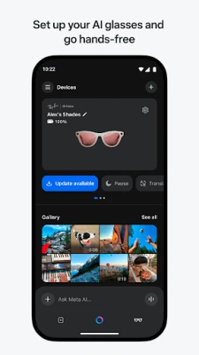 اپنے "Meta AI" گلاسز کے ساتھ مربوط ہو کر ہینڈز فری تجربہ حاصل کریں۔ یہ ایپ آپ کے "Meta AI" گلاسز کا لازمی ساتھی ہے جو ان کے انتظام، میڈیا درآمد اور شیئرنگ، اور دیگر اہم فنکشنز کے لیے ضروری ہے۔ یہ ایپ یقینی بناتی ہے کہ آپ اپنے گلاسز کی مکمل صلاحیتوں سے مستفید ہو سکیں۔ براہ کرم نوٹ کریں کہ "Meta AI" کی کچھ خصوصیات مخصوص ممالک اور زبانوں میں ہی دستیاب ہیں اور وقت کے ساتھ آہستہ آہستہ متعارف کروائی جا سکتی ہیں۔ کسی بھی مسئلے کی اطلاع دینے یا رائے دینے کے لیے، بس اپنے فون کو ہلائیں اور "رپورٹ جمع کروائیں" پر ٹیپ کریں۔